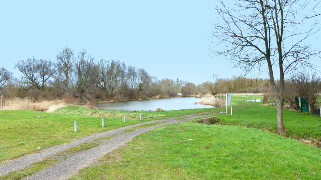 La ballastière où se trouve également jeux et terrains de pétanque.