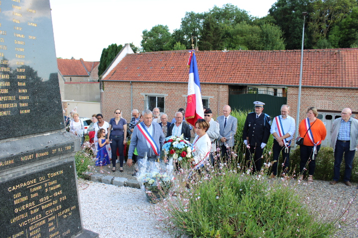 18h30 dépôt de gerbe en présence de la nouvelle Député Zahia HAMDANE, du maire de Saloüel Monsieur F DARAGON, d’élus et de Messipontins.