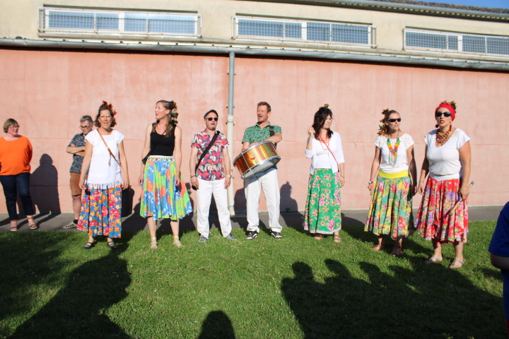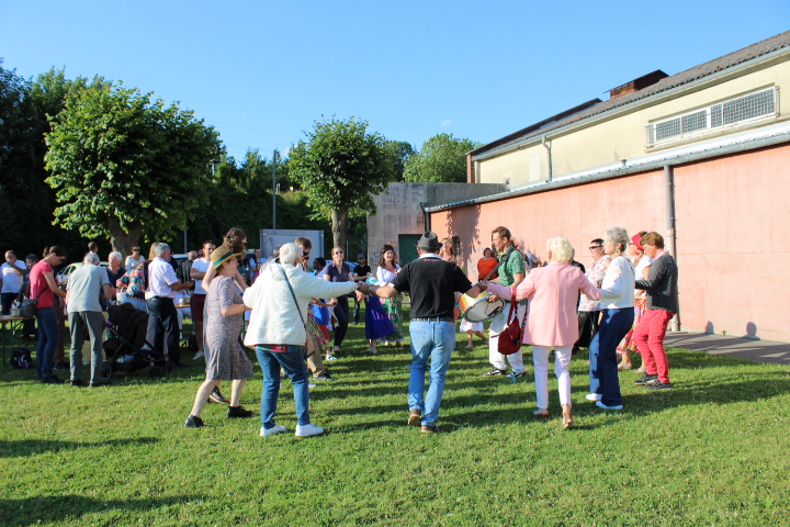 La troupe MARACAJU a animé le temps de l’apéritif, du repas et accompagné durant le trajet les habitants jusqu’à la Ballastière, lieu du Feu d’artifice…