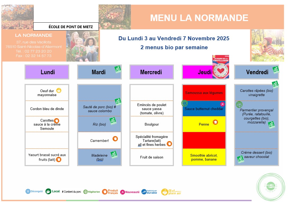 Menus du 3 novembre au 7 novembre 2025